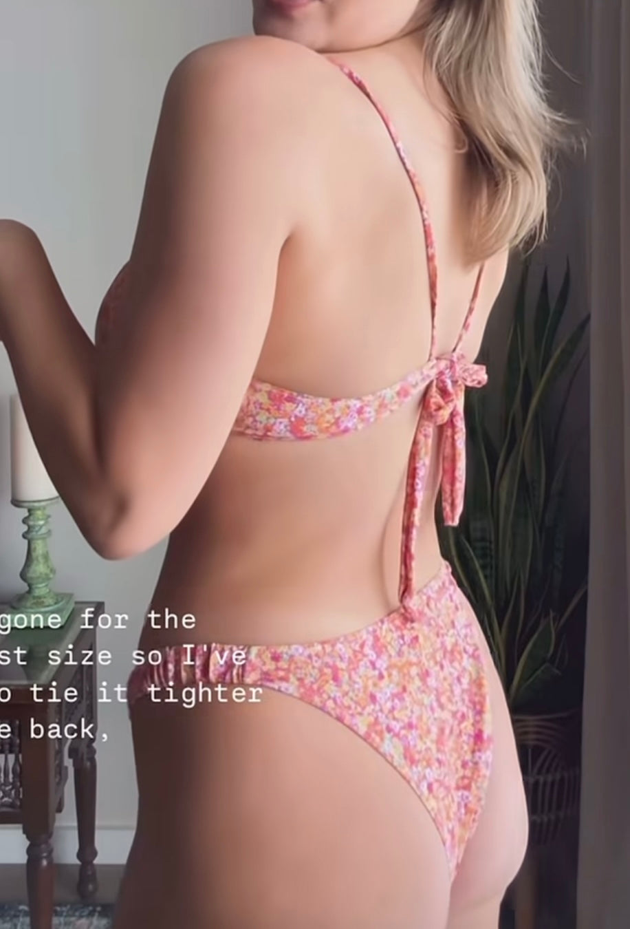 - Adjustable shoulder straps & back ties (pull through the front of the bikini to lengthen or shorten)